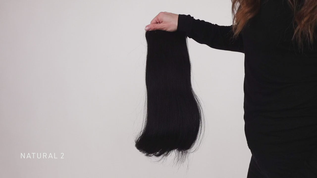 - Remy Human Hair placed on a hand sewn weft